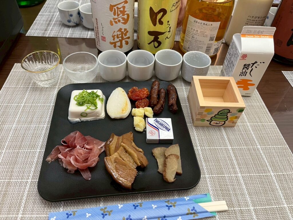 Each sake is accompanied by light snacks, creating a delightful pairing experience.